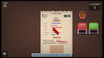 People hand you documents. You check for inconsistencies. Then approve or deny using your stamp.